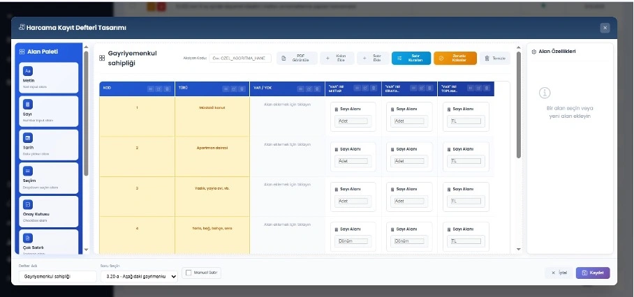 Görünürlük, validasyon ve otomatik hesaplama kuralları tanımlanabilir; veri girişinde tutarlılık ve kontrol sağlar.