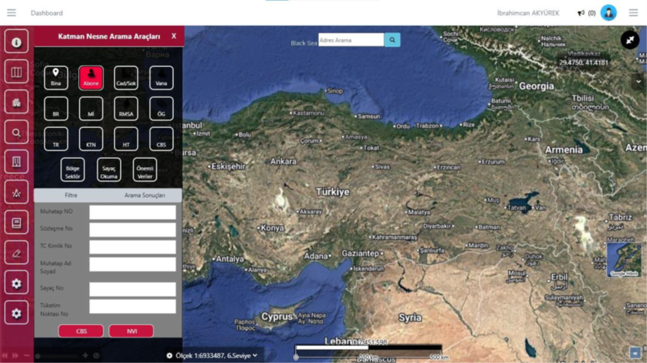 Bu ekran, sahadaki tüm aboneleri hızlıca bulmak için kullanılır. Muhtap numarası, sözleşme numarası, T.C. kimlik, sayaç ya da tüketim noktası bilgisi girilerek aboneye ait CBS veya NVI verisine doğrudan ulaşılabilir. Tek noktadan detaylı abone sorgulaması yapmayı sağlar.