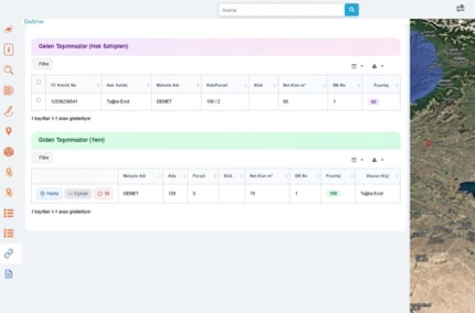 Sistem, dönüşüme giren ve dönüşüm sonrası üretilen taşınmazları harita tabanlı olarak karşılaştırır ve eşleştirme süreçlerini yönetir. Eşleştirme, puantaj ve atama işlemleri ile şeffaf ve izlenebilir dağıtım süreci oluşturulur.