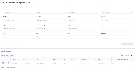 Kentsel dönüşüm sürecinde mevcut yapının yerine inşa edilecek yeni yapının sisteme tanımlandığı ekrandır. İl, ilçe, mahalle, ada, parsel, toplam alan ve yapım yılı bilgileri ile kayıtlar oluşturulur.
